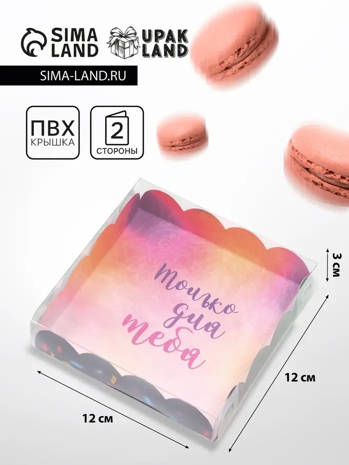 Коробка для печенья, кондитерская упаковка с PVC крышкой, «Только для тебя», 21 х 21 х 3 см