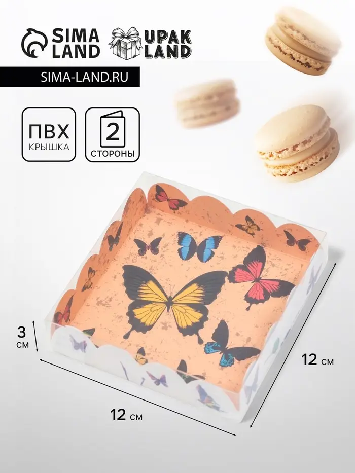 Коробка для печенья, «Акварельные бабочки», 12×12×3 см