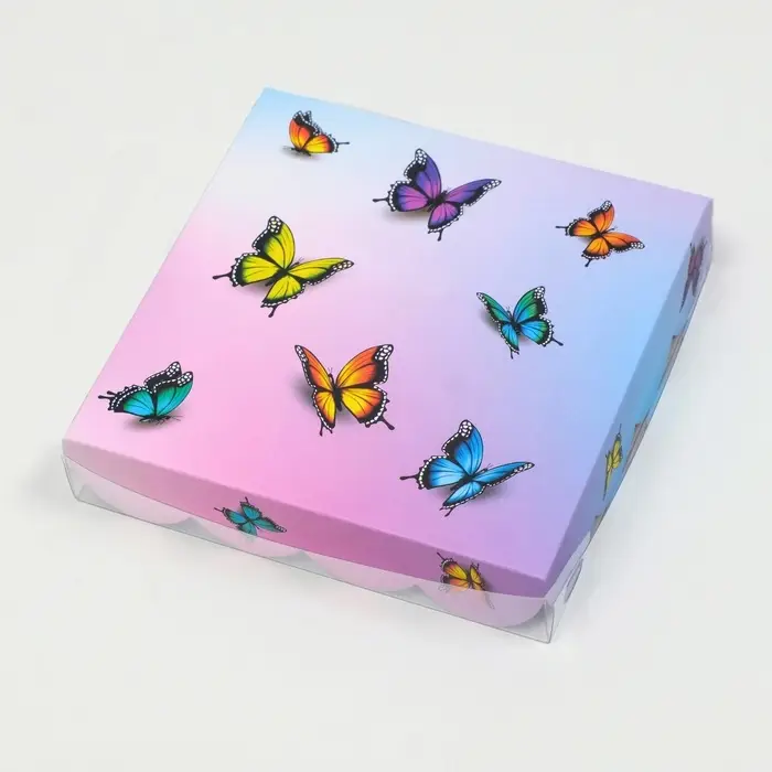 Коробка для печенья, «Бабочки в небе», 15×15×3 см