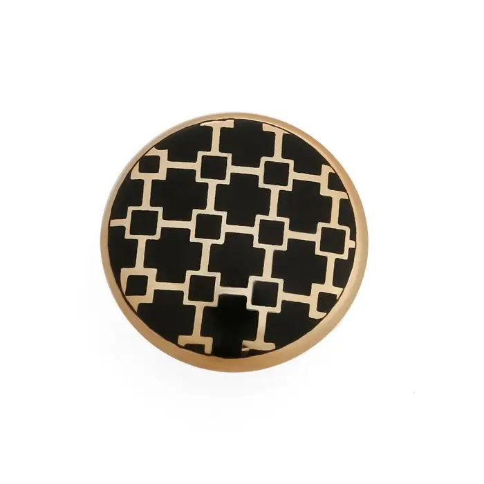 Интересный дизайн ручки сочетается с различными типами мебельного гарнитура. Фурнитура имеет привлекательный внешний вид и компактный размер. Золотой оттенок с вставкой из черного цвета идеально подходит к мебельным фасадам в различной цветовой гамме.