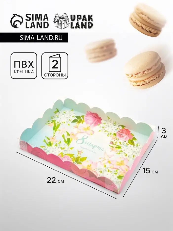 Коробка для печенья, кондитерская упаковка с PVC крышкой, «8 марта», 21 х 21 х 3 см