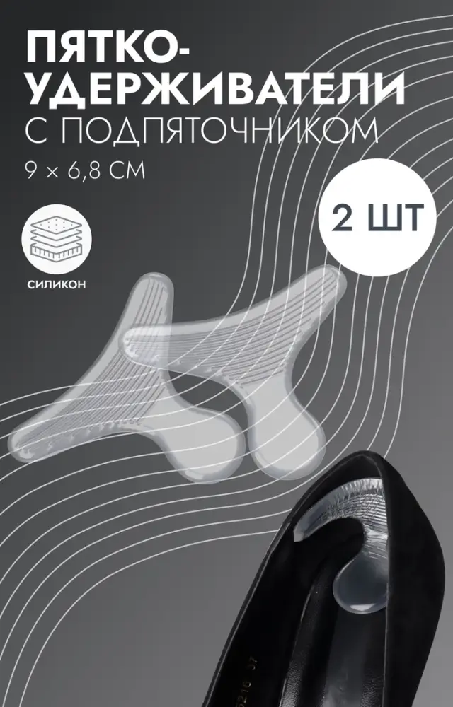Пяткоудерживатели для обуви, с подпяточником, на клеевой основе, силиконовые, 9×6.8 см, пара, прозрачные