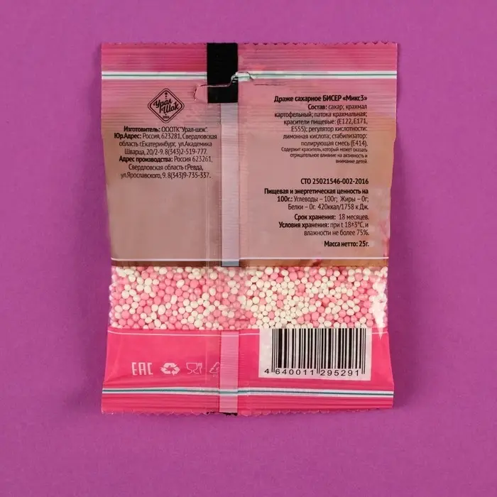 Посыпка кондитерская «Бисер» бело-розовая, 25 г