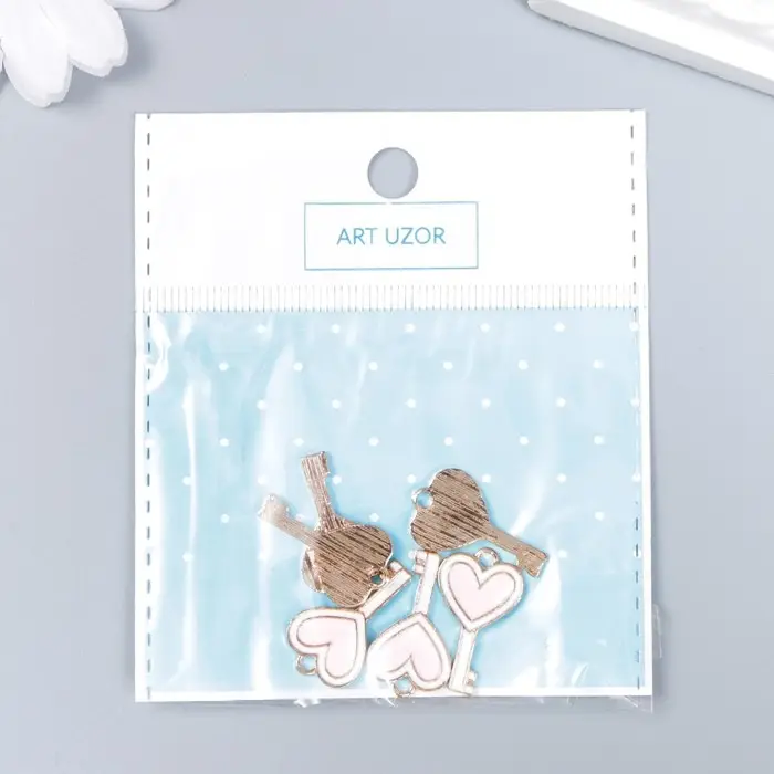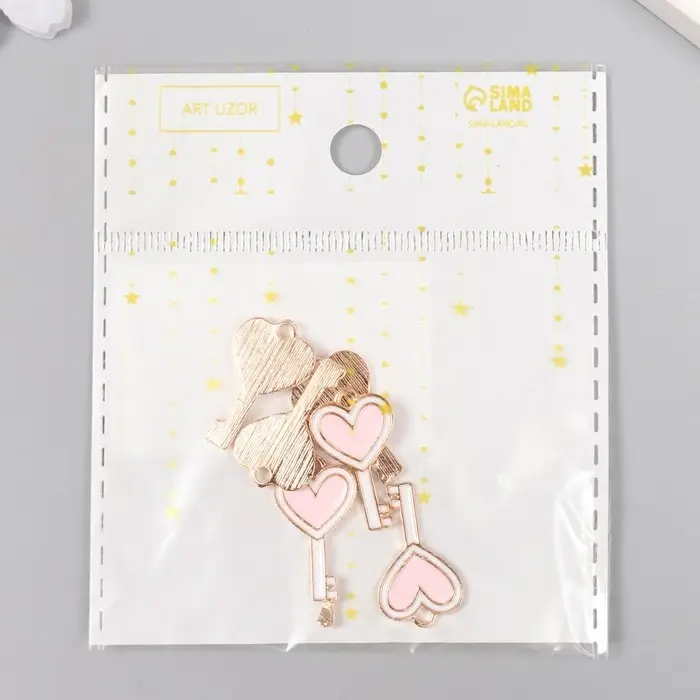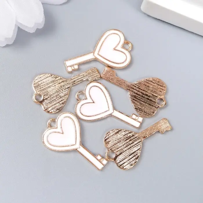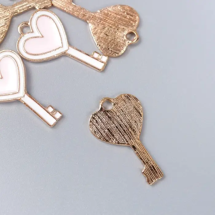 Металлический элемент, декоративная подвеска «Арт Узор. Ключик с сердцем», эмаль, бело-розовый, 1.3×2.3 см