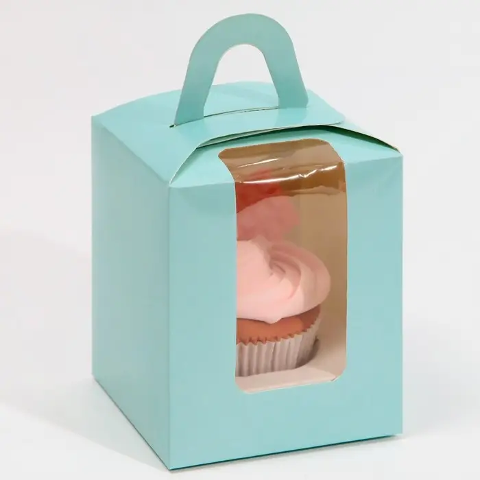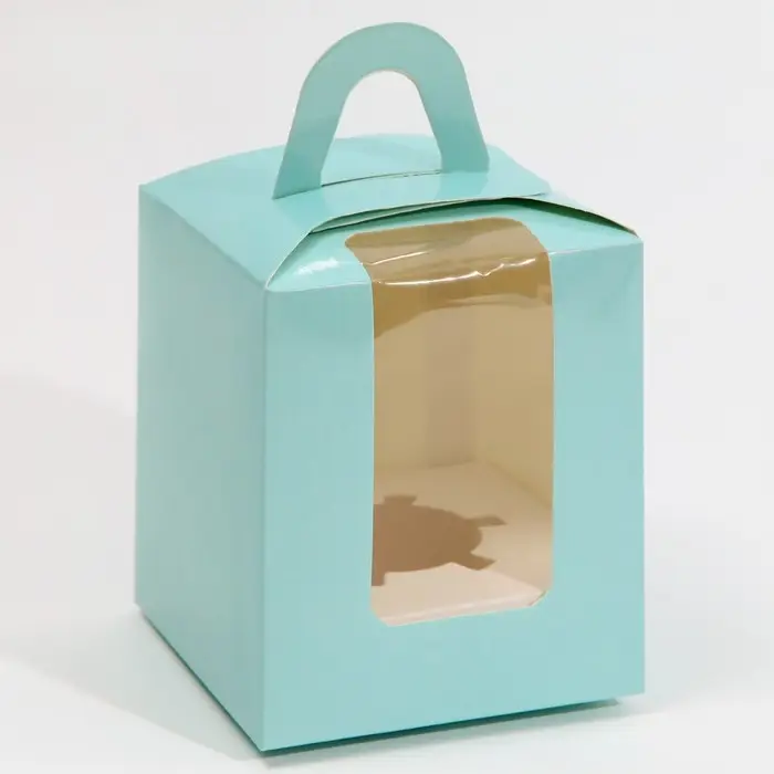 Коробка для капкейков, кондитерская упаковка, 1 ячейка «Голубой», 9 х 9 х 11 см