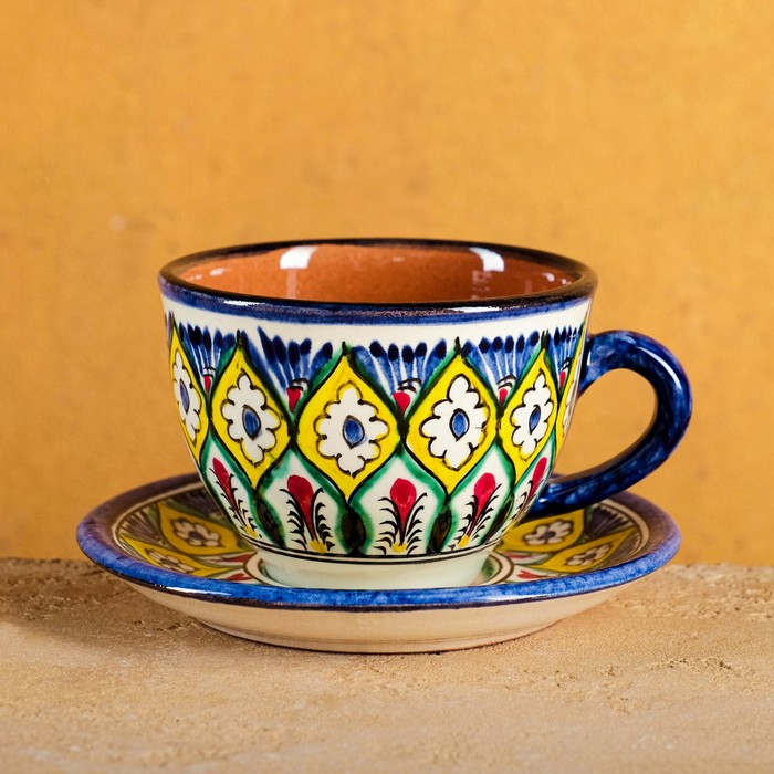 Чайная пара Риштанская Керамика "Цветы", 200мл, синяя