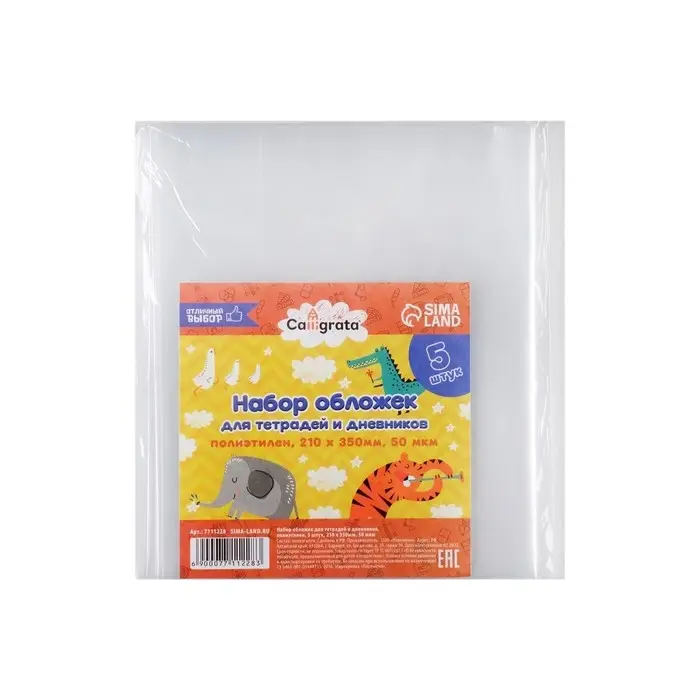 Набор обложек ПЭ 5 штук, 210 х 350 мм, 50 мкм, для тетрадей и дневников (в мягкой обложке)