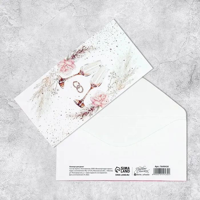 Конверт для денег «Свадебный», 16.5×8 см