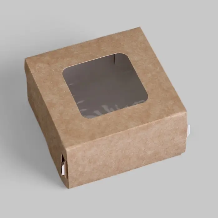 Коробка складная, с окном, крафтовая, 7×7×4 см