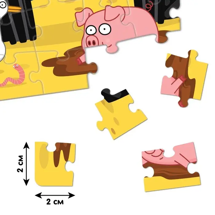 Сборка пазла — это не только увлекательное занятие, но и эффективный способ развить у ребёнка усидчивость и пространственное мышление. Яркие иллюстрации с персонажами мультфильма «Синий трактор» делают процесс ещё более интересным, а удобный размер элементов идеально подходит для маленьких ручек.