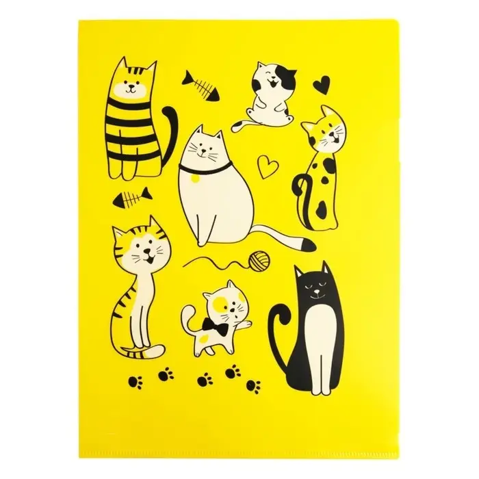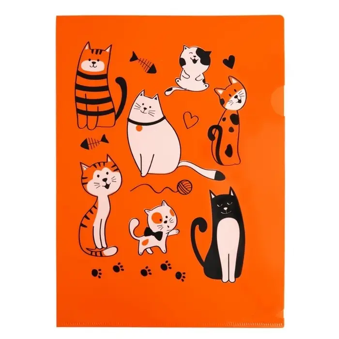 Папка-уголок А4, 180 мкм, Calligrata "Котики", полупрозрачная, с принтом, микс