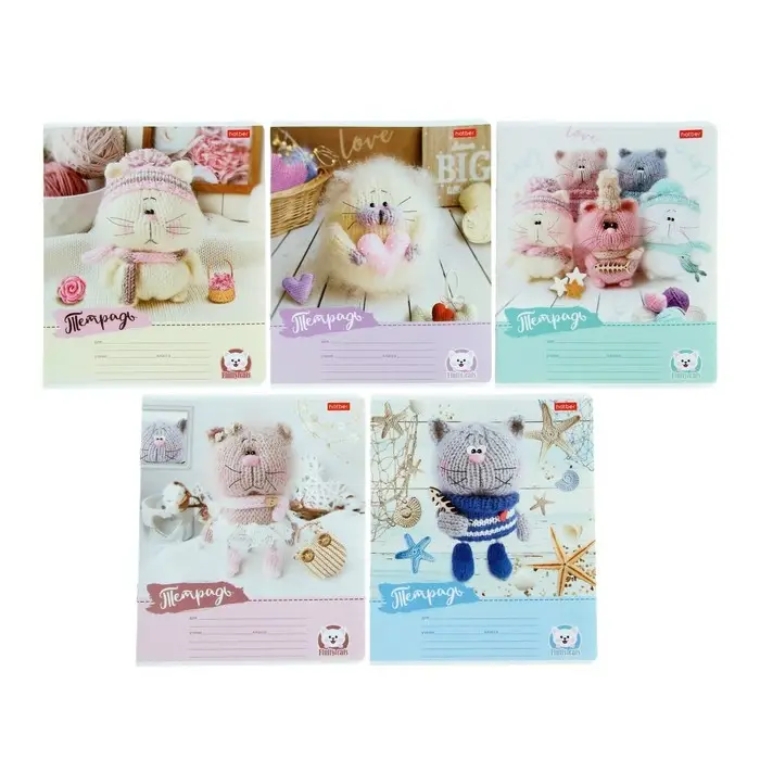 Комплект тетрадей из 5 штук, 48 листов в клетку Calligrata "Meow", обложка мелованный картон, блок офсет