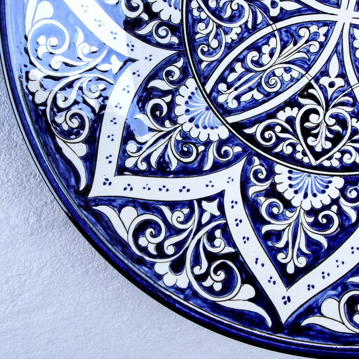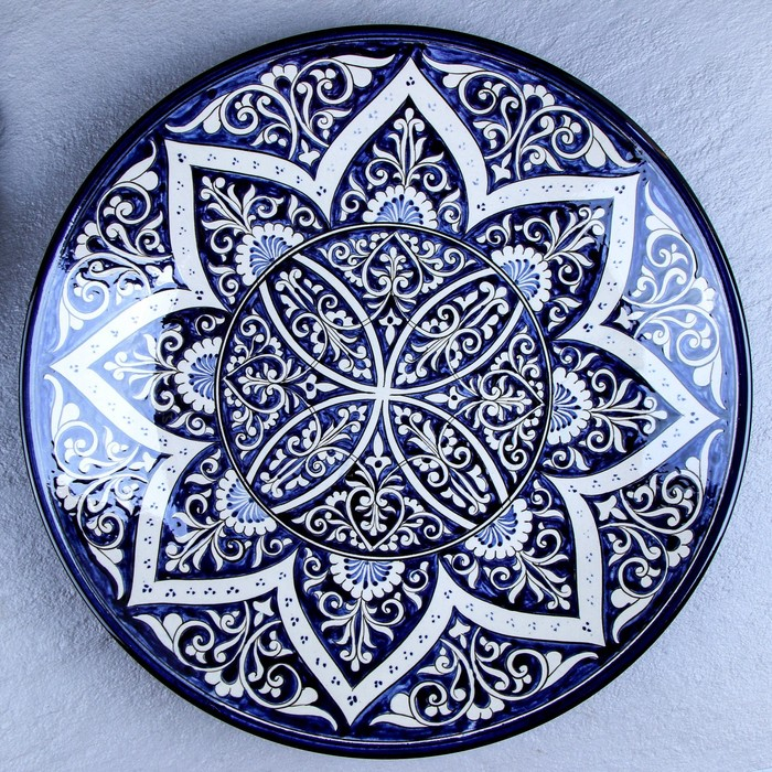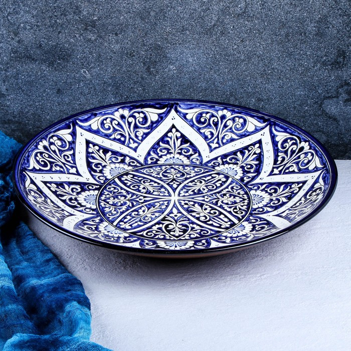 Ляган Риштанская Керамика "Цветы", 42 см, синий