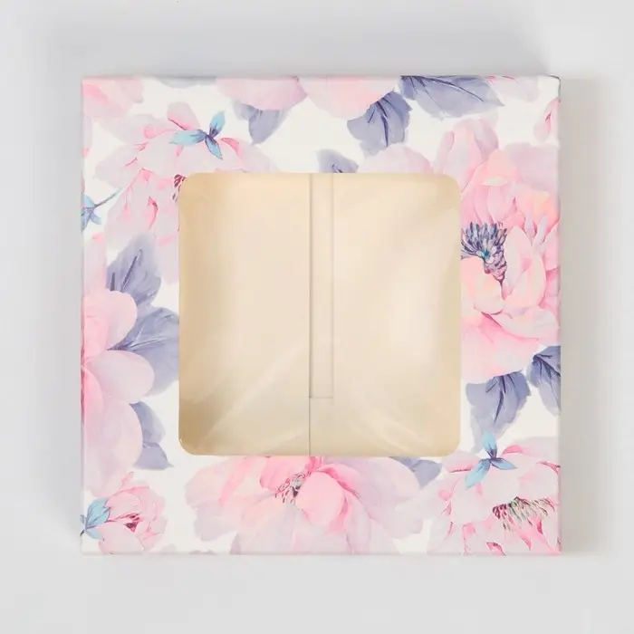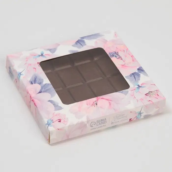 Коробка для шоколада, кондитерская упаковка, «Цветы», с окном, 10.2 х 1.4 х 10.2 см