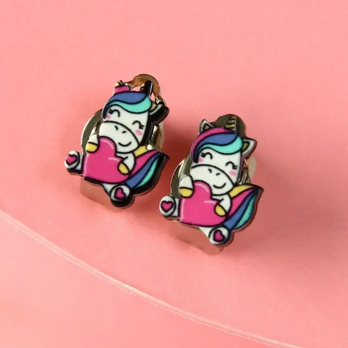 Серьги-клипсы детские «Выбражулька» сказка, единорог яркий, цветные