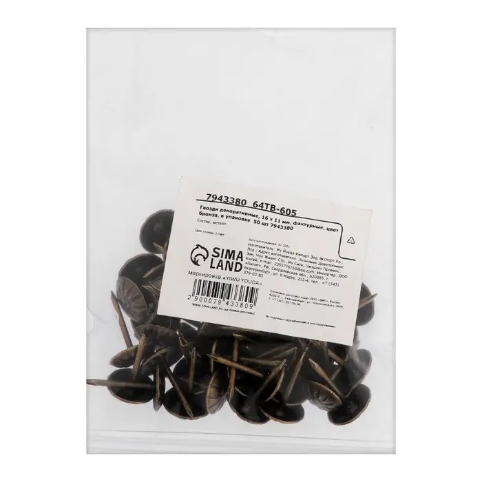 Гвозди ТУНДРА, декоративные, обивочные, фактурные, 11×16 мм, бронза, фасовка 50 шт.