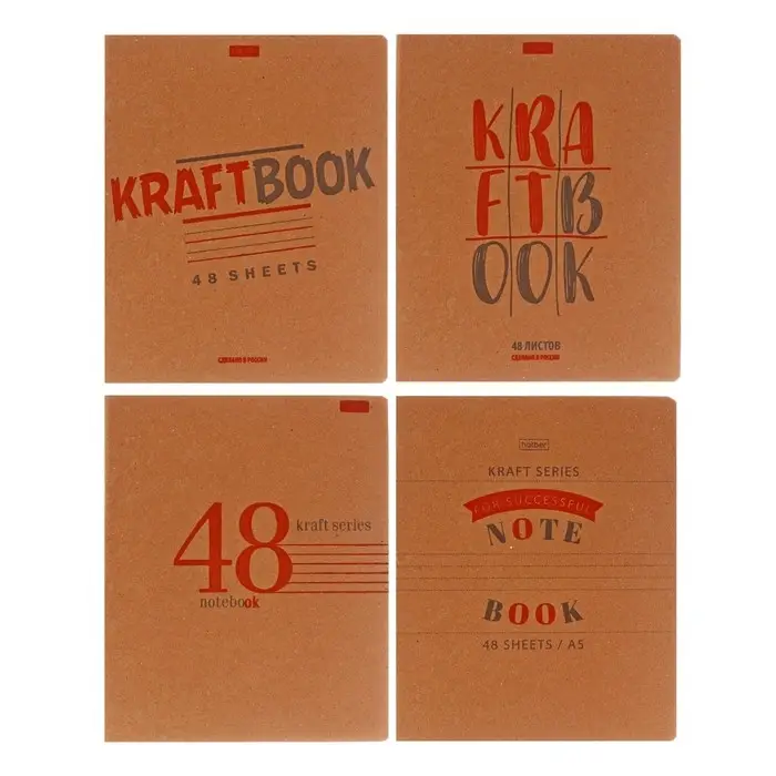 Тетрадь 48 листов, в клетку, "КРАФТ", обложка крафт-картон, блок офсет 65г/м², МИКС