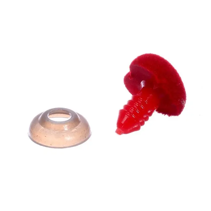 - С изнаночной стороны на винт наденьте шайбу и задвиньте до упора, плотно прижимая нос к ткани.