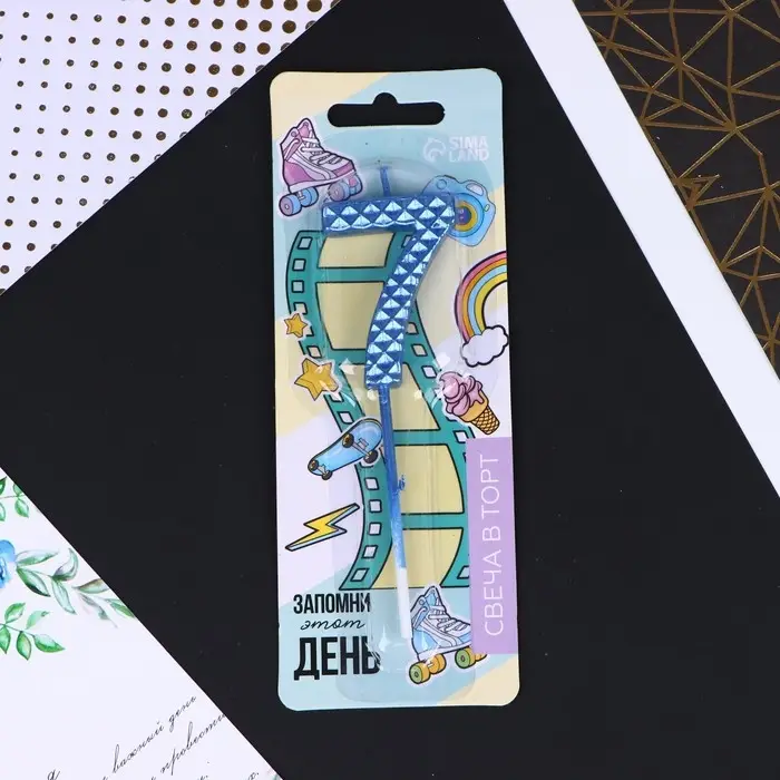 Свеча для торта, цифра «7», синяя, 4 х 13 см