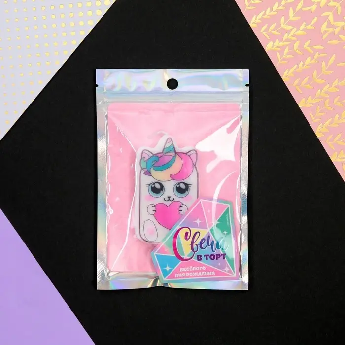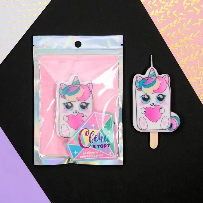 Набор свечей для торта, 5 шт "Праздничные единороги", разноцветные