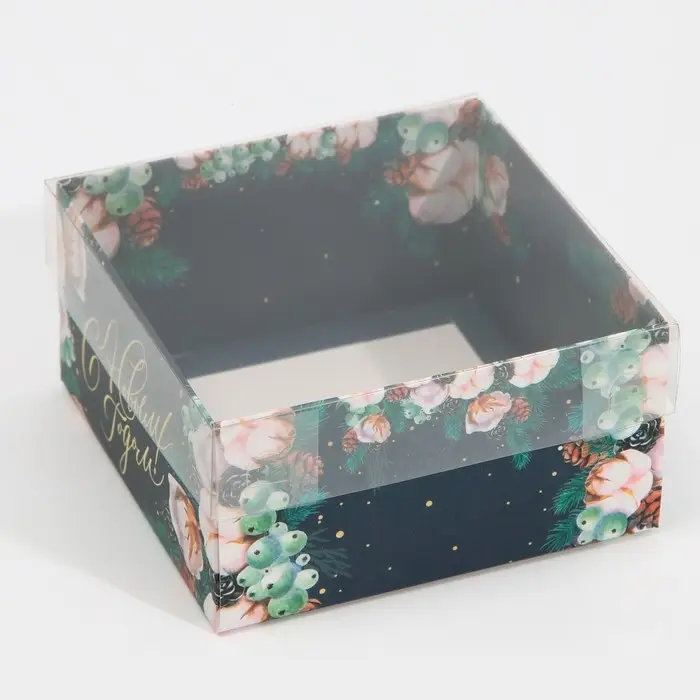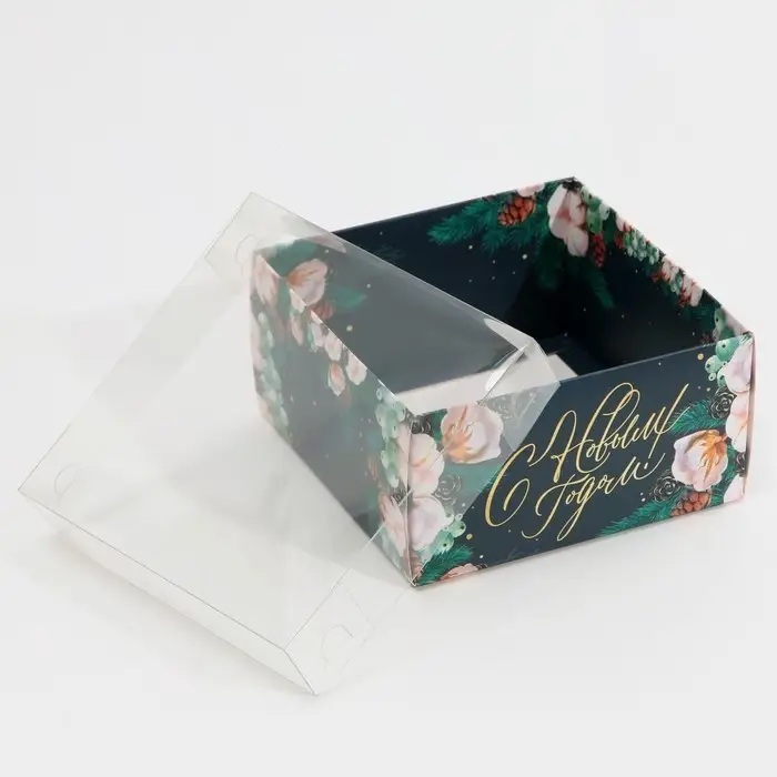 Коробка для кондитерских изделий с пластиковой крышкой «Хлопок», 12 х 6 х 11.5 см