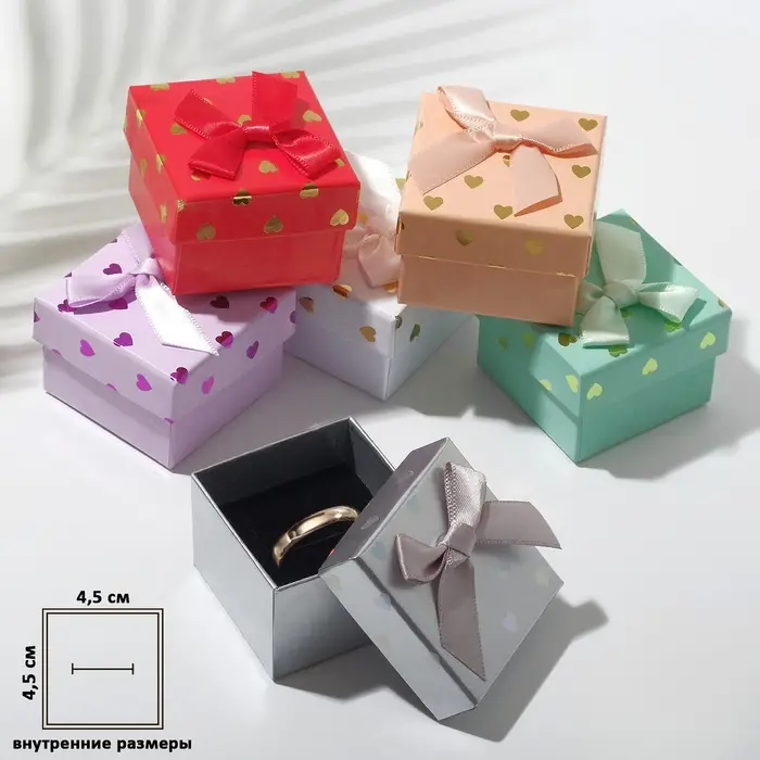 Коробочка подарочная под серьги/кольцо «Сердечки», 5×5, МИКС, вставка чёрная
