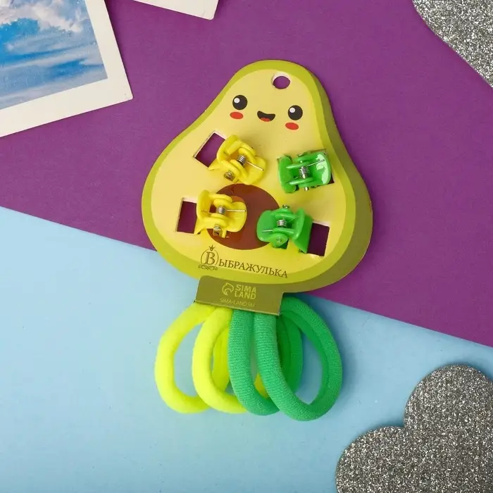 Набор для волос «Маленькая радость»: 4 резинки, 4 краба, авокадо, жёлто-зелёный