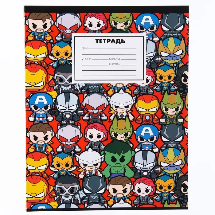 Тетрадь в клетку 18 листов, 5 видов МИКС, обложка мелованный картон, «Мстители»