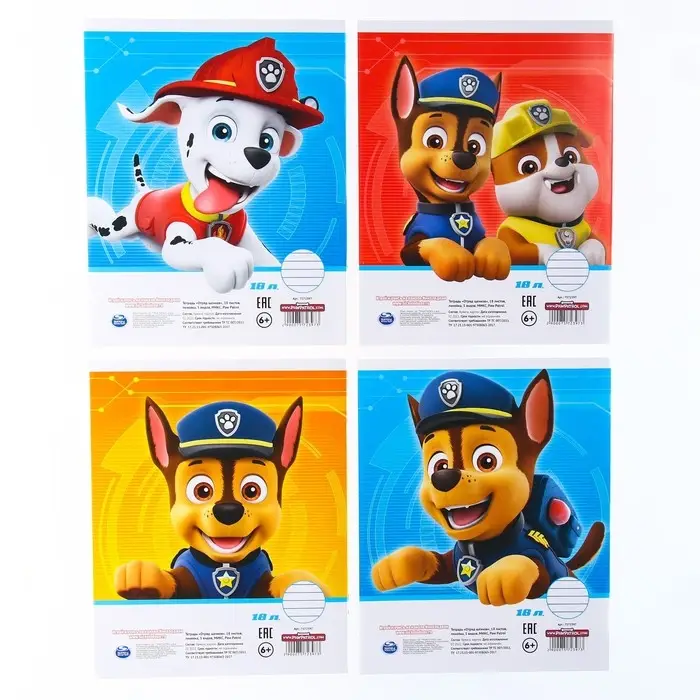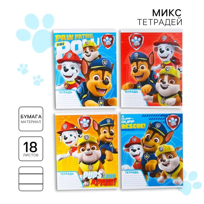 Тетрадь в линейку 18 листов, 4 вида МИКС, обложка мелованная бумага, «Щенячий патруль»