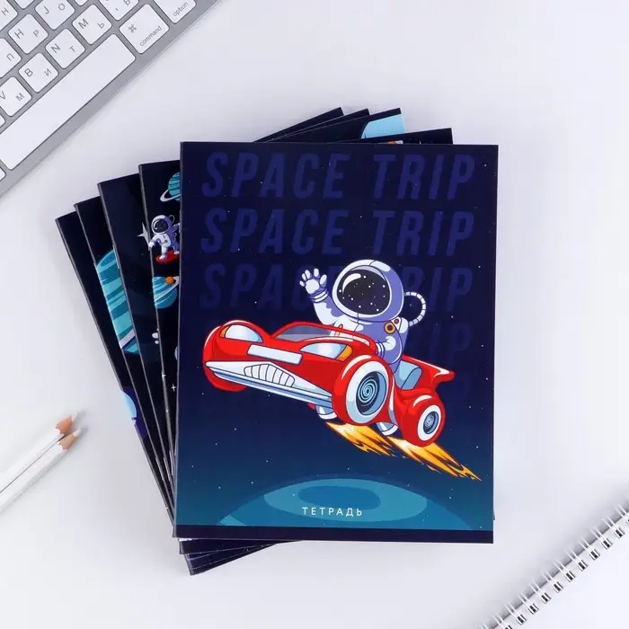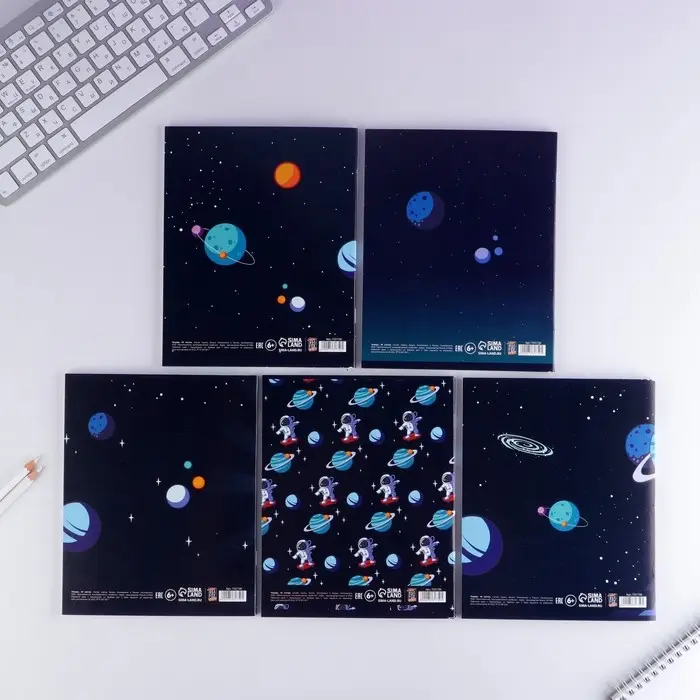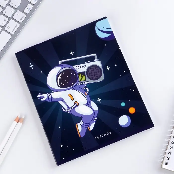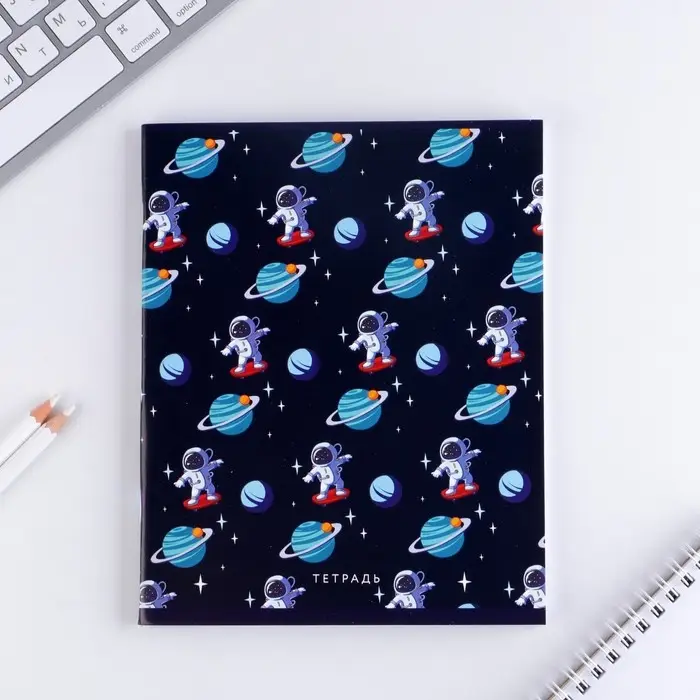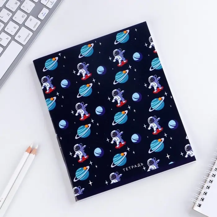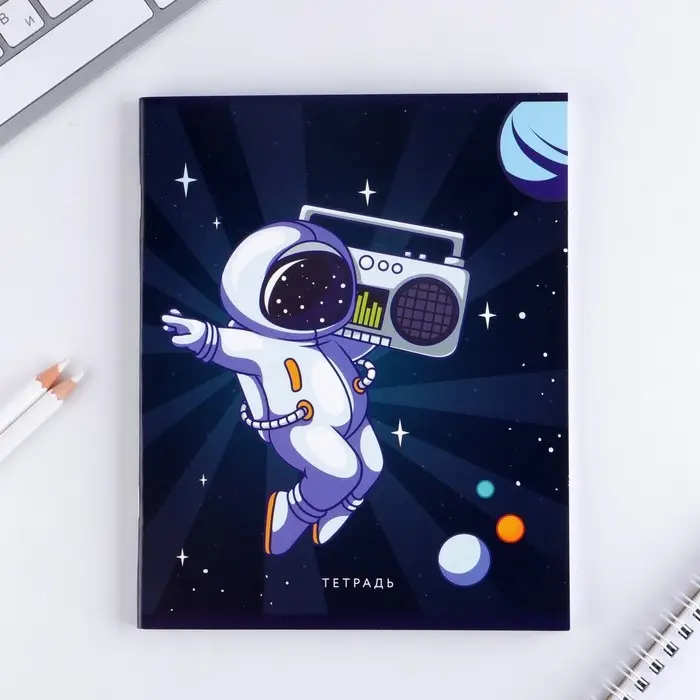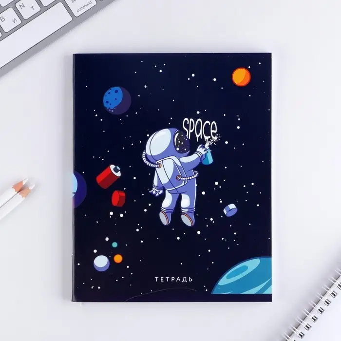 Тетрадь в клетку, 48 л., А5, на скрепке, блок №1 «Космос» МИКС