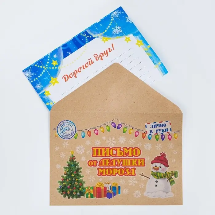 - конверт размером 23 × 16 см с новогодним дизайном.