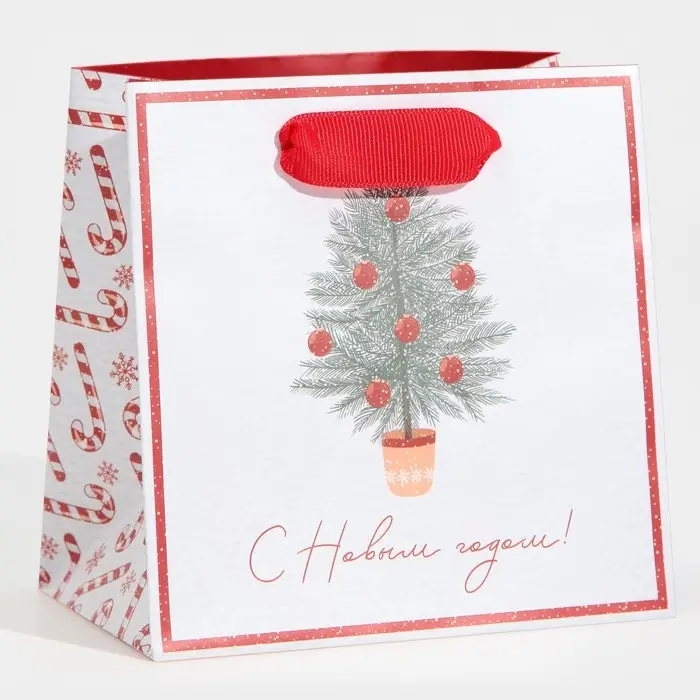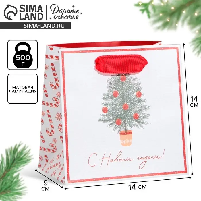 Пакет подарочный новогодний ламинированный квадратный «Новогодние сладости», 14 х 14 х 9 см