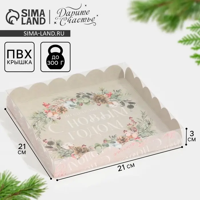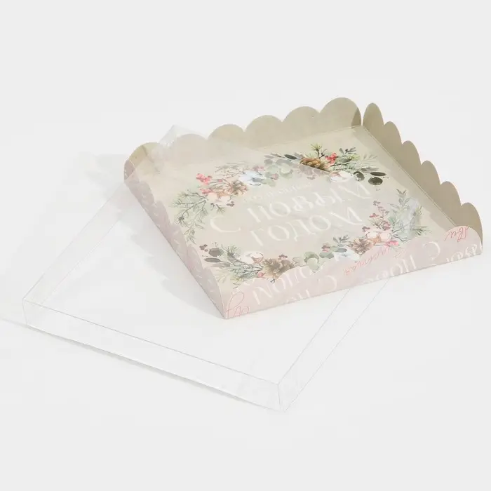 Коробка для кондитерских изделий с пластиковой крышкой «Акварель», 21 х 21 х 3 см