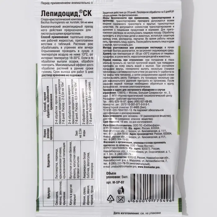 БИО инсектицид «Лепидоцид», от листогрызущих гусениц, 5 мл