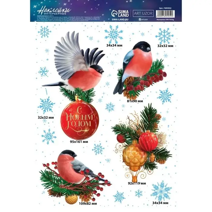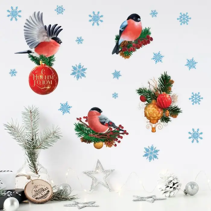 Наклейка интерьерная «Волшебные снегири», 21 х 29,7 см