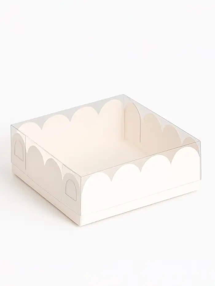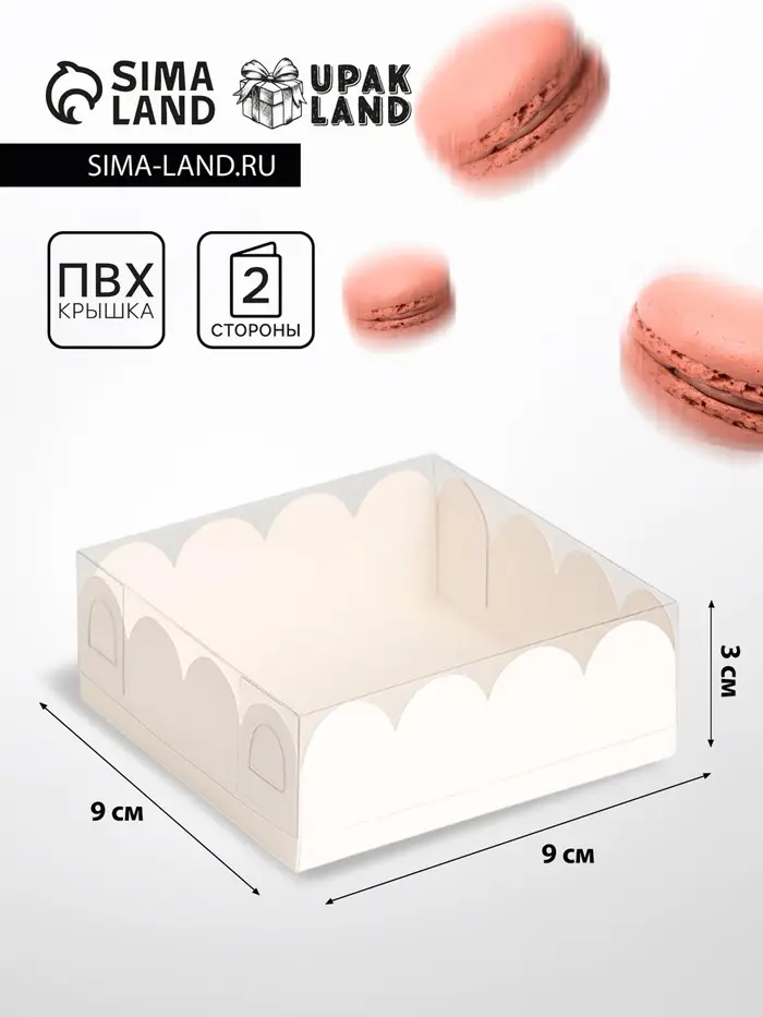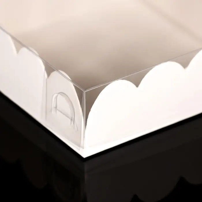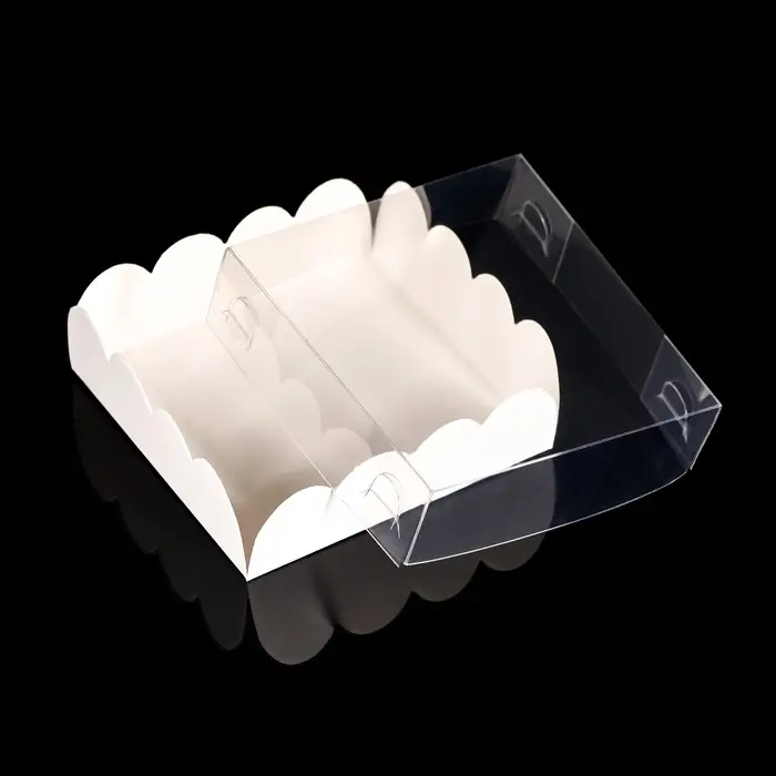 Коробка для печенья с прозрачной крышкой, можно видеть содержимое коробки. Прекрасно подойдет для десертов, можно использовать для праздничного декора.
