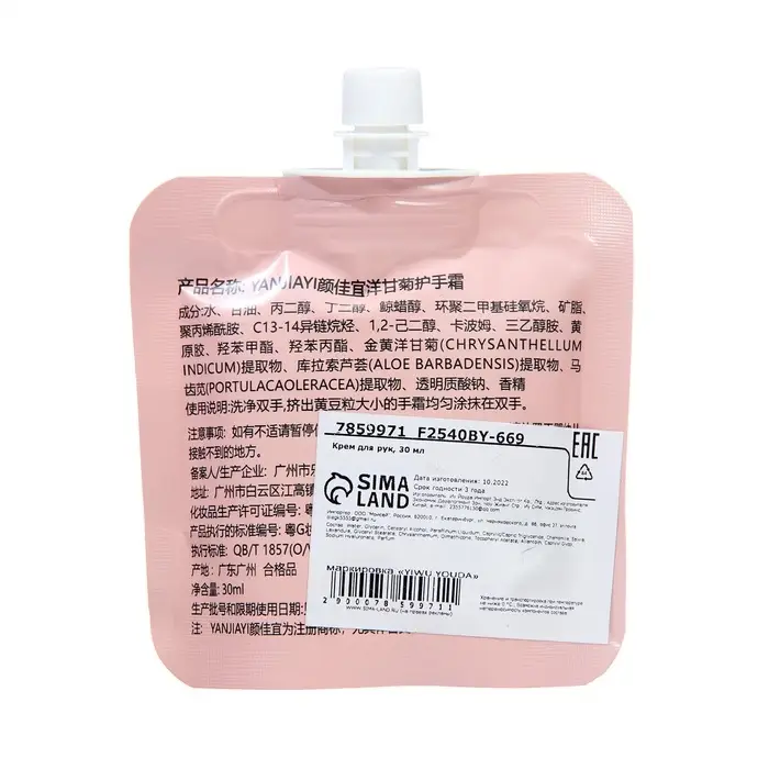 Способ применения: нанести небольшое количество крема на чистую сухую кожу рук.