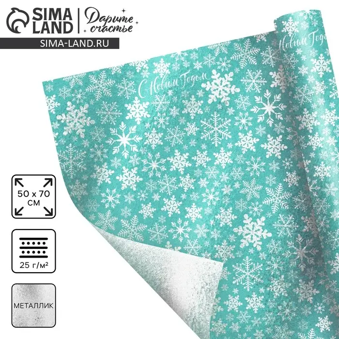 Плёнка упаковочная на Новый год фольгированная «Снежная вьюга», 70 х 50 см