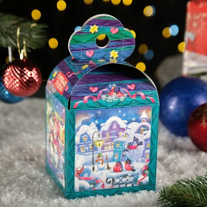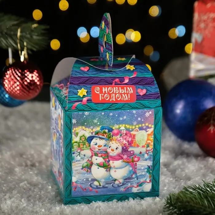 Упаковка для подарка является неотъемлемым атрибутом любого подарка. Подобранная со вкусом упаковка придаст подарку еще большую ценность. Материал изделия - картон. Коробка складная прекрасно подойдет для оформления подарка на - Новый год. Наполнить можно конфетами и различными новогодними сувенирами.