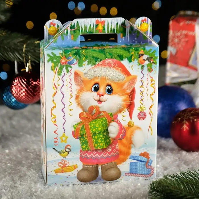 Упаковка для подарка является неотъемлемым атрибутом любого подарка. Подобранная со вкусом упаковка придаст подарку еще большую ценность. Материал изделия - картон. Коробка складная прекрасно подойдет для оформления подарка на - Новый год. Наполнить можно конфетами и различными новогодними сувенирами.