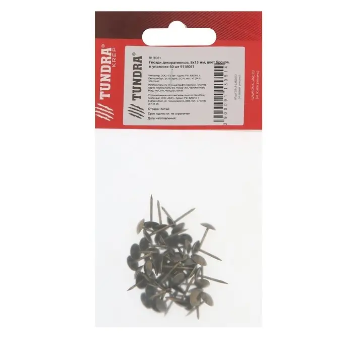 Гвозди ТУНДРА, декоративные, обивочные, 8×15 мм, бронза, фасовка 50 шт.
