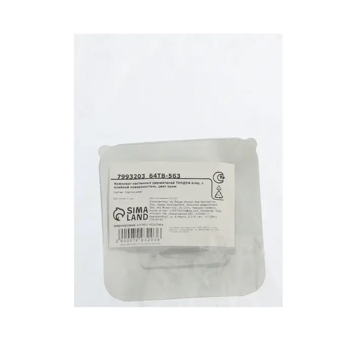 Держатель настенный, 2 шт, ТУНДРА krep, с клейкой поверхностью, 60х60 мм, цвет хром