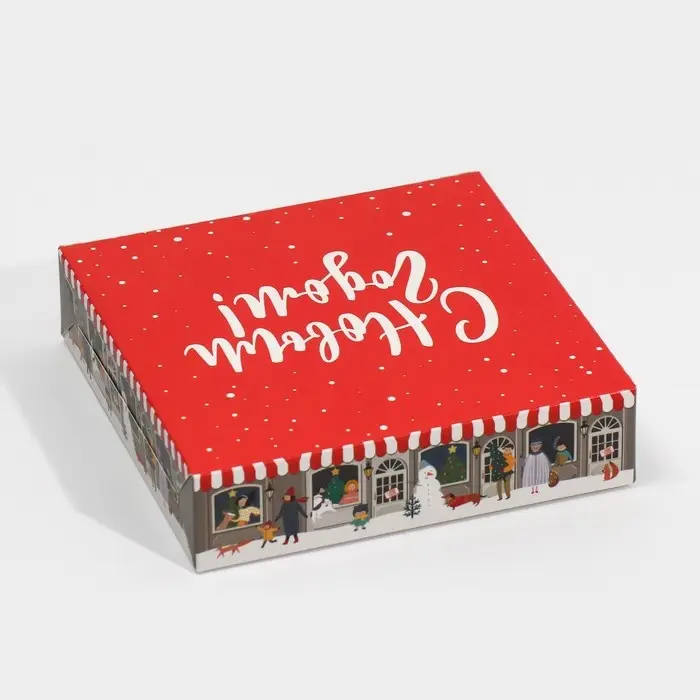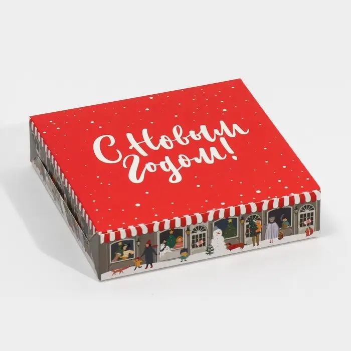 Коробка складная «Новогодний городок», 14 х 14 х 3.5 см