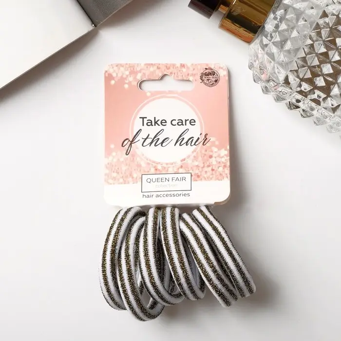 Резинка для волос "Спорт элит" (набор 6 шт) полоса, 4 см, золотисто-белый