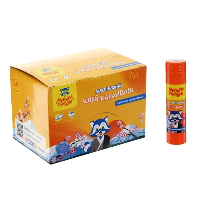 Клей-карандаш PVP 8г Мульти-Пульти "Енот в Японии", с цветным индикатором