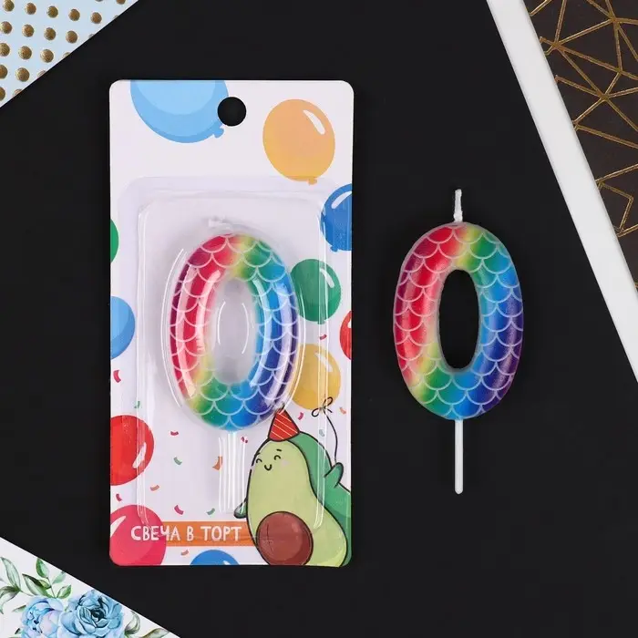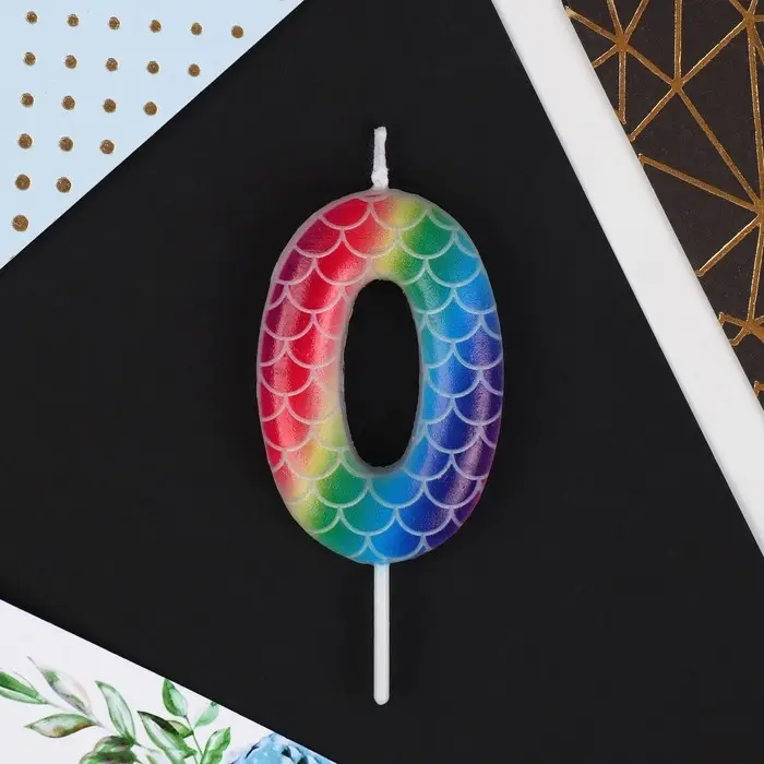 Свеча для торта, цифра «0», разноцветная, 5,5 х 8 см.