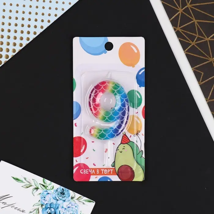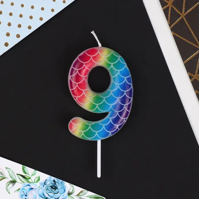 Свеча для торта, цифра «9», разноцветная, 5,5 х 8 см.