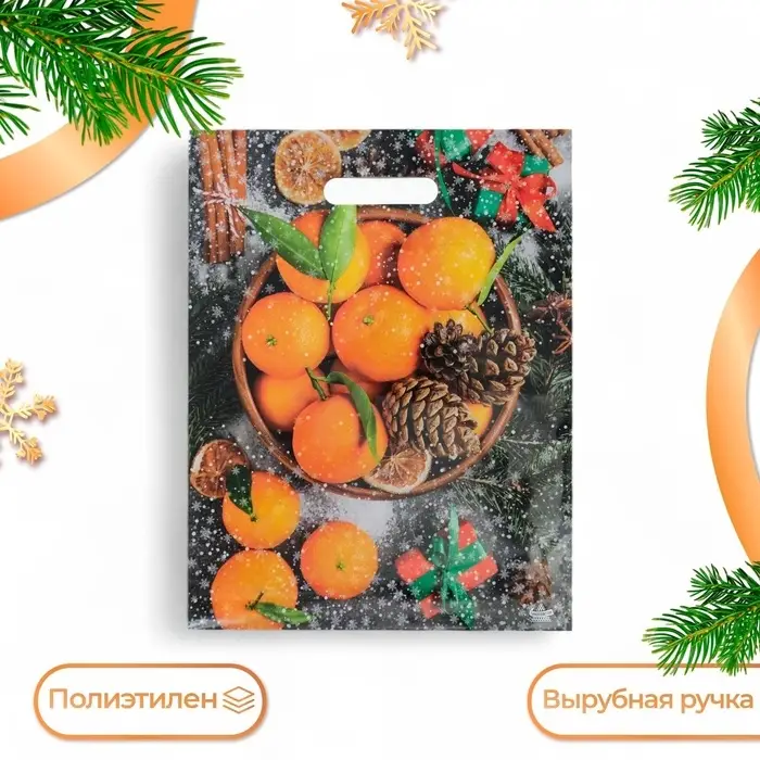 Пакет «Мандарины», полиэтиленовый с вырубной ручкой, л 40×31 см