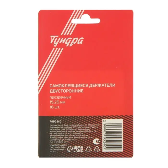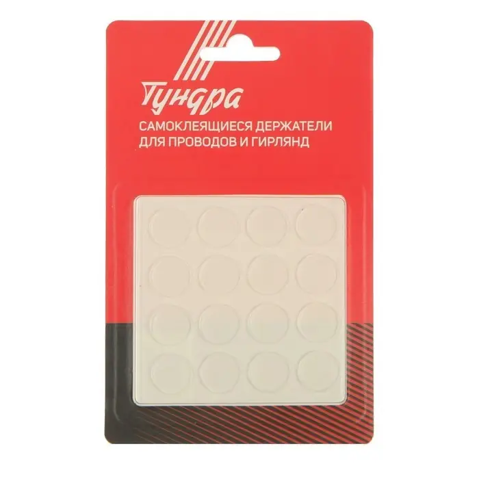 Двусторонние самоклеящиеся держатели ТУНДРА, d=15.25 мм, прозрачные, 16 шт.