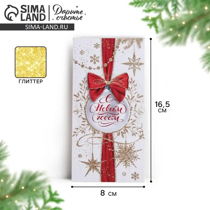 Конверт для денег «С Новым Годом!», глиттер, 16,5 х 8 см